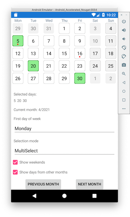 I’ve created recently customizable calendar control for Xamarin.Forms with following features:
