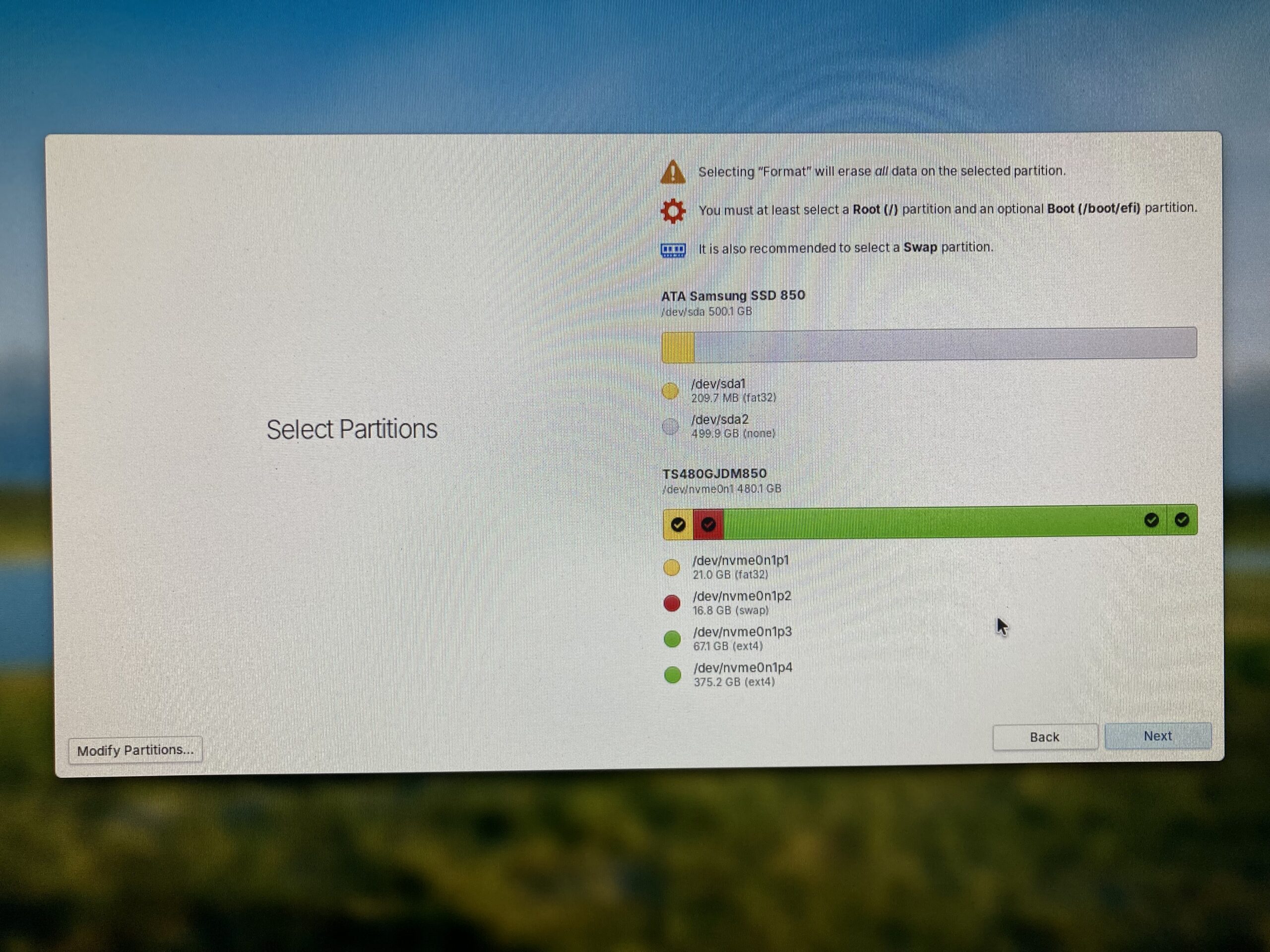 Using this error-prone approach, I ended up with the following partition sizes, which allowed me to install and run elementary OS: